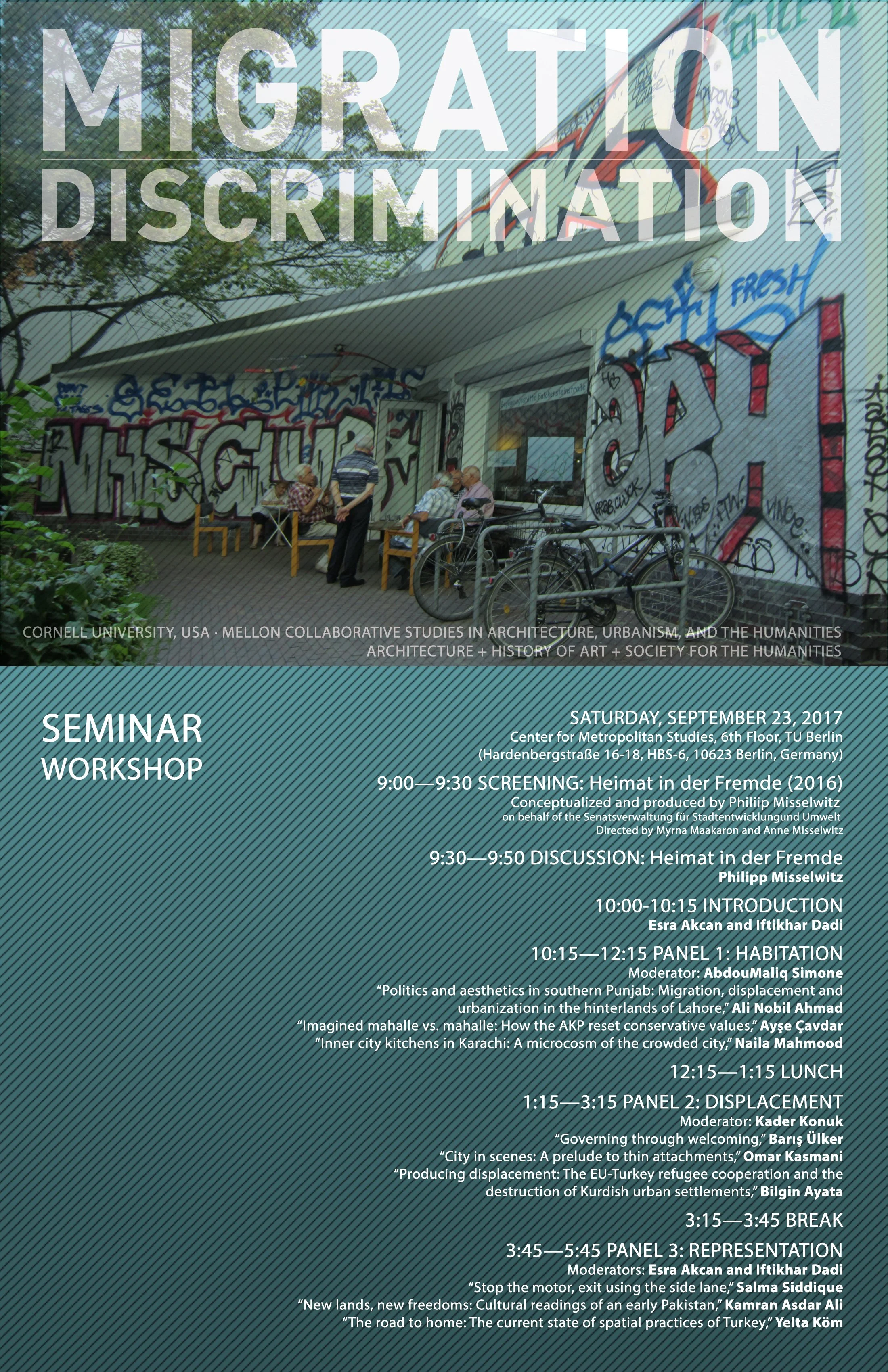 Berlin Workshop with Ali Nobil Ahmad, Kamran Asdar Ali, Bilgin Ayata, Ayşe Çavdar, Omar Kasmani, Yelta Köm, Kader Konuk, Naila Mahmood, Philipp Misselwitz, Salma Siddique, Abdoumaliq Simone, Barış Ülker. Co-organized with Iftikhar Dadi. Center for Metropolitan Studies, TU, Berlin, Germany. September 23, 2017.